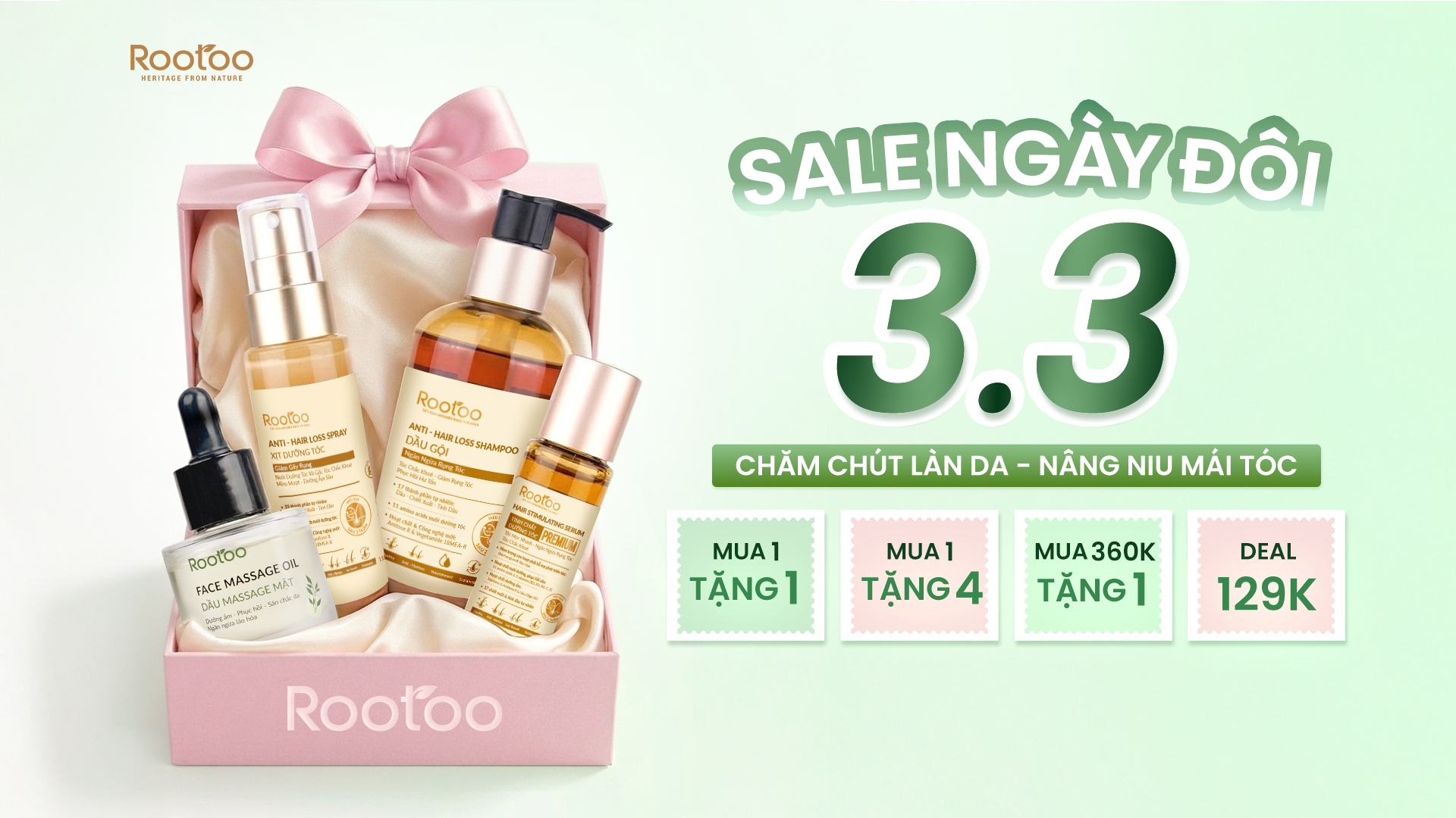 3.3 này, ROOTOO mang theo loạt ưu đãi hấp dẫn dành riêng cho những ai muốn bắt đầu lại hành trình chăm sóc bản thân một cách chỉn chu và thông minh hơn. Đây là thời điểm lý tưởng để phục hồi làn da sau những ngày bận rộn, nuôi dưỡng mái tóc chắc khỏe từ gốc với mức giá tốt nhất trong tháng.