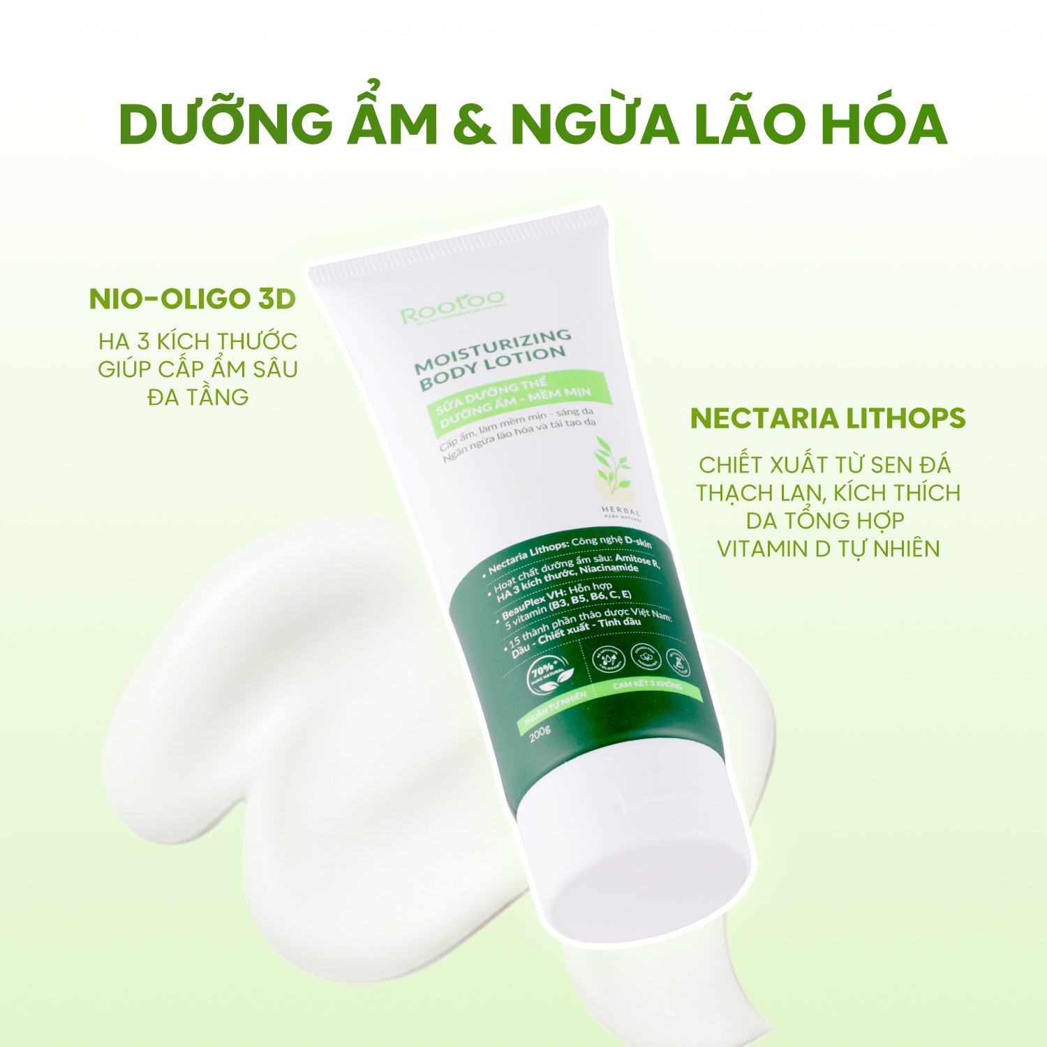 Sự kết hợp của Nectaria Lithops và Nio Oligo 3D mang đến khả năng nuôi dưỡng đa tầng. Nectaria Lithops được chiết xuất từ sen đá Thạch Lan, giúp làn da tự tổng hợp vitamin D tự nhiên, đồng thời tăng khả năng đề kháng. Công nghệ Nio Oligo 3D với ba tầng phân tử HA giúp cấp ẩm theo từng lớp biểu bì, duy trì sự mịn màng và độ đàn hồi ổn định suốt ngày.