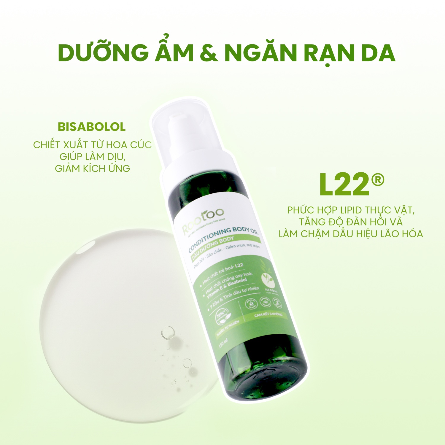 Dầu dưỡng chứa L22®, phức hợp lipid thực vật được mô phỏng theo cấu trúc lipid tự nhiên của làn da khỏe mạnh. Cơ chế này giúp tăng độ ẩm, cải thiện vẻ đàn hồi và giữ lại lớp màng bảo vệ tự nhiên. Làn da trở nên mềm mại, săn chắc hơn theo từng lần sử dụng, phù hợp cho mọi phụ nữ đang muốn hỗ trợ giảm cảm giác căng rát hoặc khô ráp.