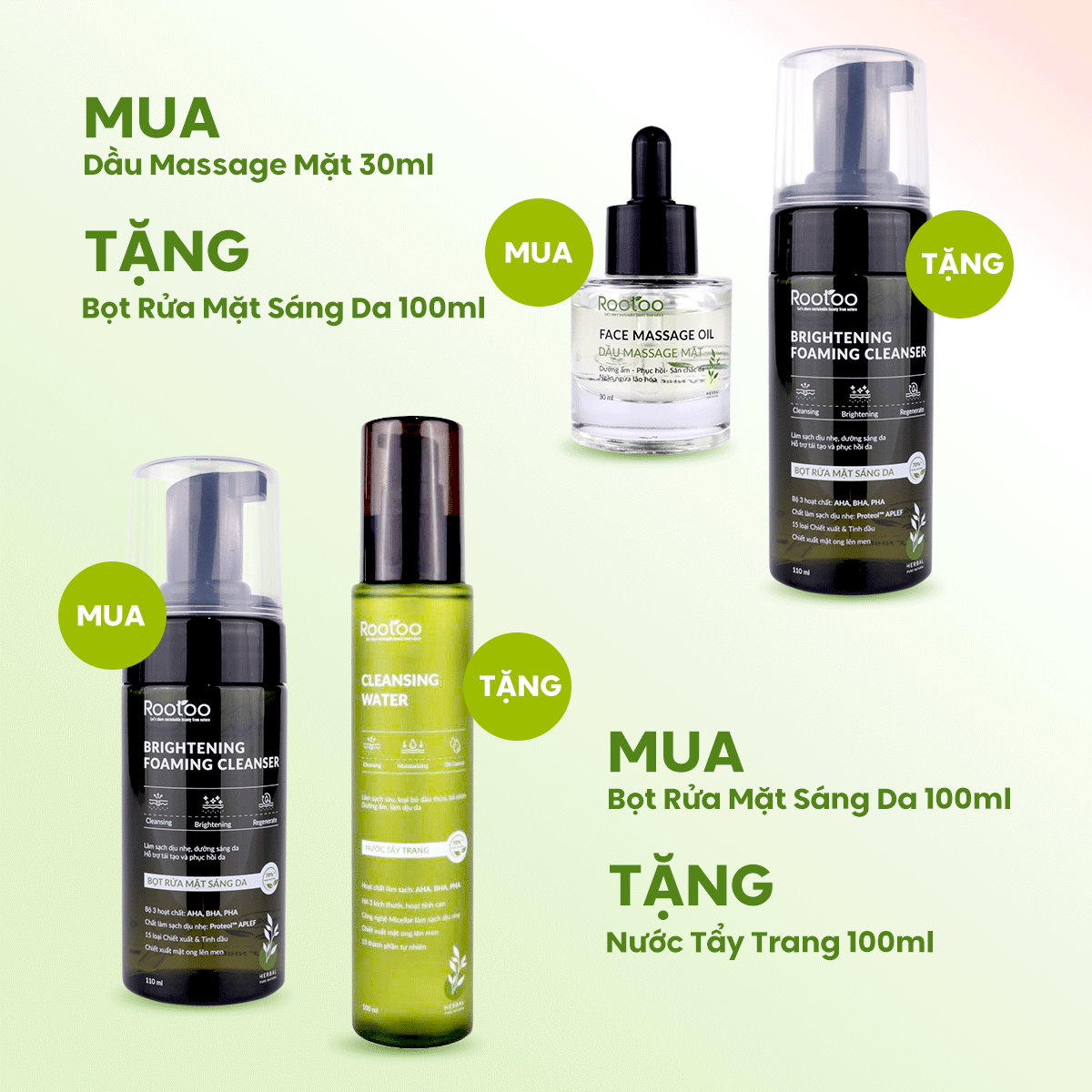 Mua Dầu Massage Mặt 30ml → Tặng Bọt Rửa Mặt Sáng Da 100ml