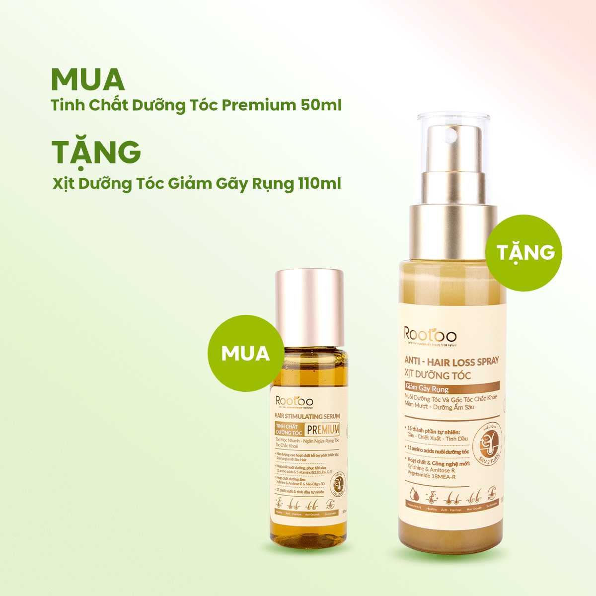 Mua Tinh Chất Dưỡng Tóc Premium 50ml → Tặng Xịt Dưỡng Tóc Giảm Gãy Rụng 110ml