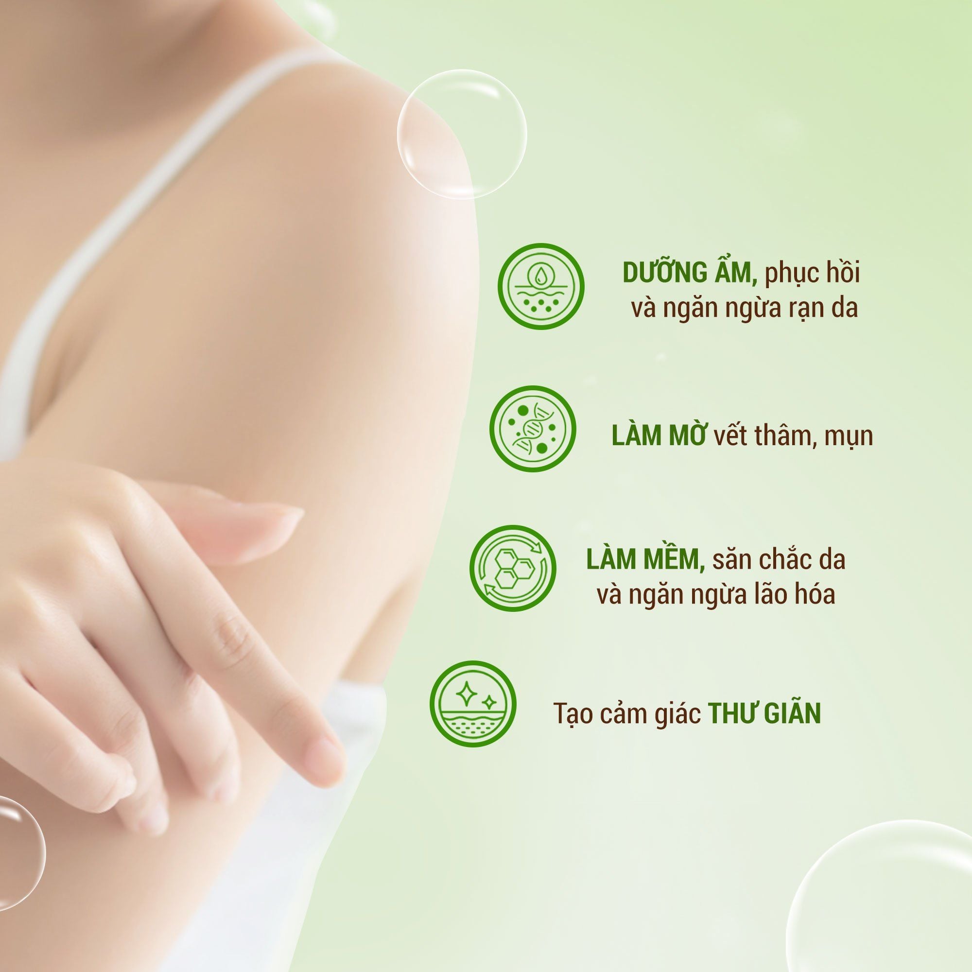 - Làm dịu da, cấp ẩm, giảm kích ứng.
