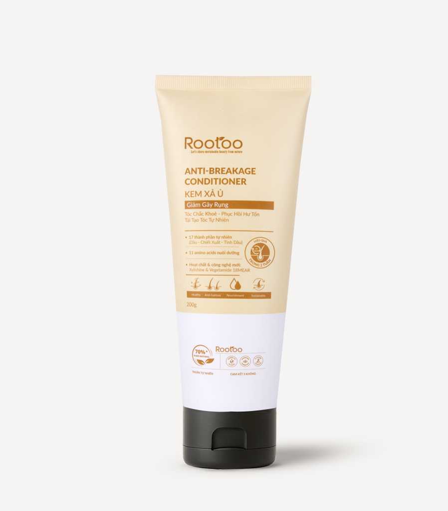 Kem xả ủ tóc thảo dược ROOTOO là sản phẩm chăm sóc tóc chiết xuất thảo dược tự nhiên, giúp phục hồi tóc hư tổn, nuôi dưỡng nang tóc từ sâu bên trong và ngăn ngừa gãy rụng hiệu quả. Với sự kết hợp độc đáo giữa các chiết xuất truyền thống như bồ kết, hà thủ ô, cỏ mần trầu… và các hoạt chất hiện đại, sản phẩm mang đến mái tóc mềm mượt – chắc khỏe – bóng khỏe tự nhiên.