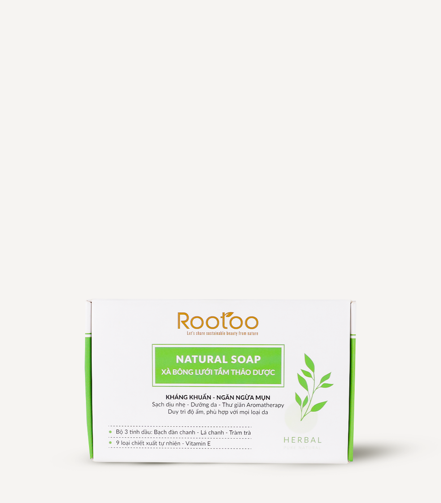Xà Bông Lưới Tắm Thảo Dược ROOTOO là sản phẩm làm sạch da toàn thân với công thức đặc biệt giúp ngừa mụn, hỗ trợ kháng khuẩn và làm sáng da hiệu quả. Kết hợp cùng túi lưới tắm tạo bọt, sản phẩm mang đến trải nghiệm thư giãn tự nhiên và chăm sóc da chuyên sâu từ các chiết xuất thảo dược an toàn, lành tính.